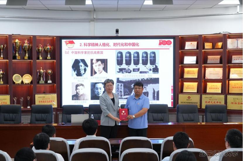 党委书记曲建辉为王公老师颁发了科学家精神宣讲指导教师聘书。
