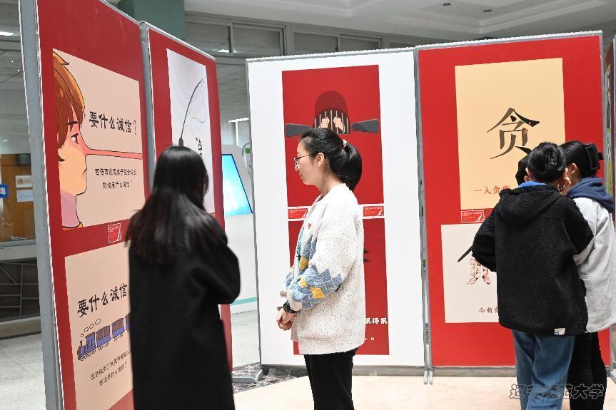 党员参观图书馆一楼廉洁文化主题艺术作品展,弘扬清廉守正、担当实干之风,推动廉洁文化建设走深走实。