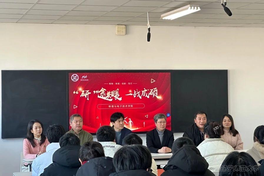 院长孙景昌老师、党委副书记雷鸣老师、副院长陈建兴老师、团委书记兼2024级本科生辅导员张倩老师、2022级本科生辅导员任美懿老师在理化楼A719与考研学子见面并进行暖心慰问。老师们的暖心讲话,如春风化雨,驱散了冬日的严寒,字里行间皆是对同学们的关怀与期待。