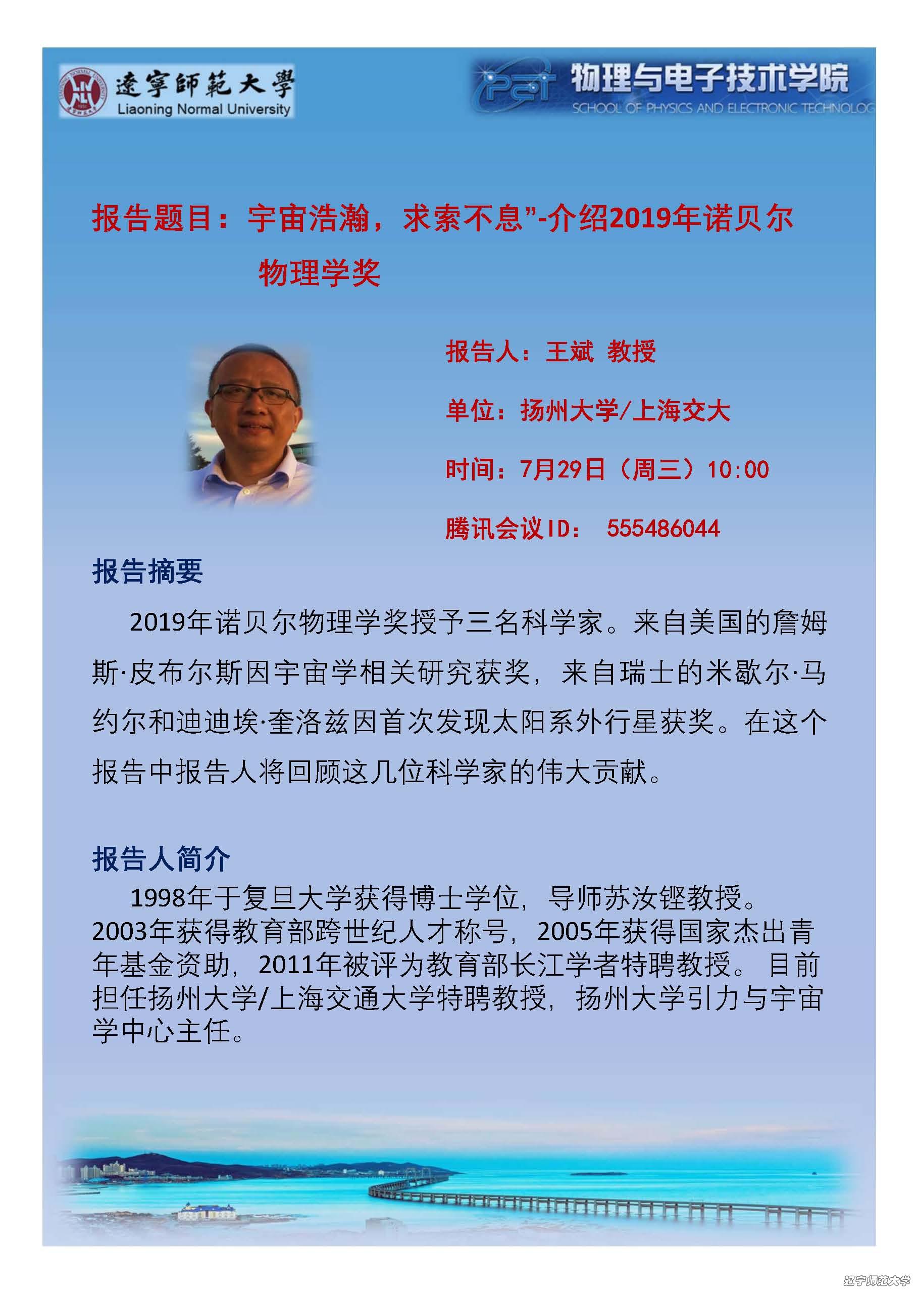7月29日上午10:00扬州大学/上海交大王斌教授学术报告
