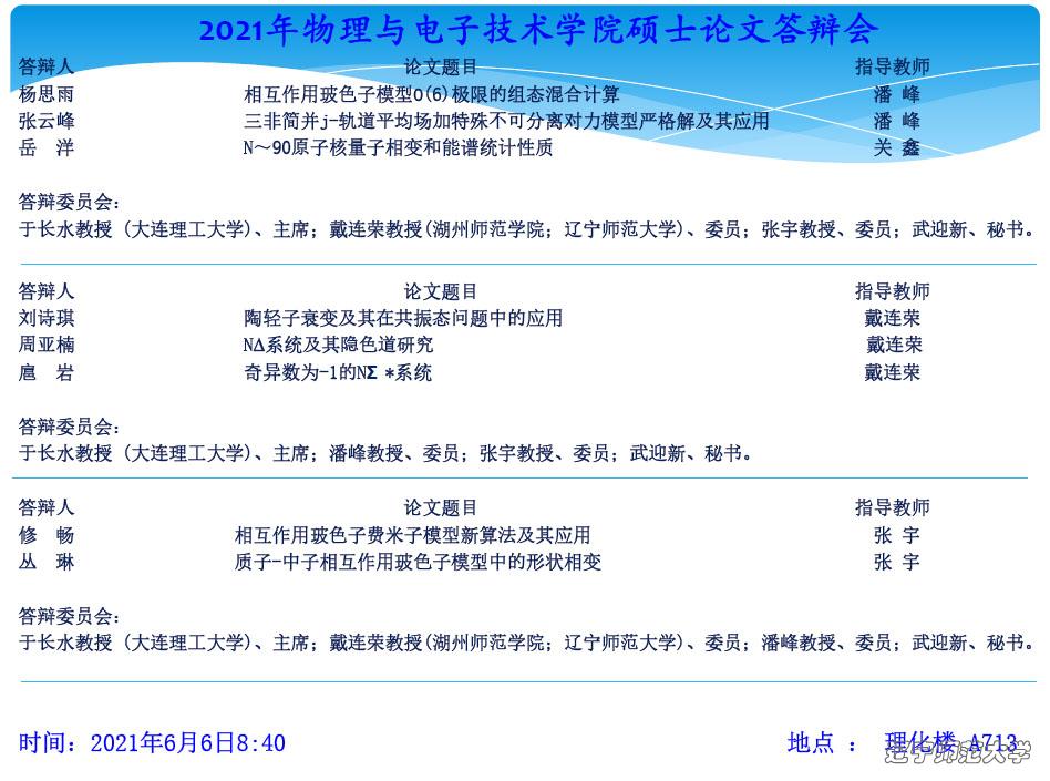 2021年原子核物理专业硕士学位论文答辩会通告