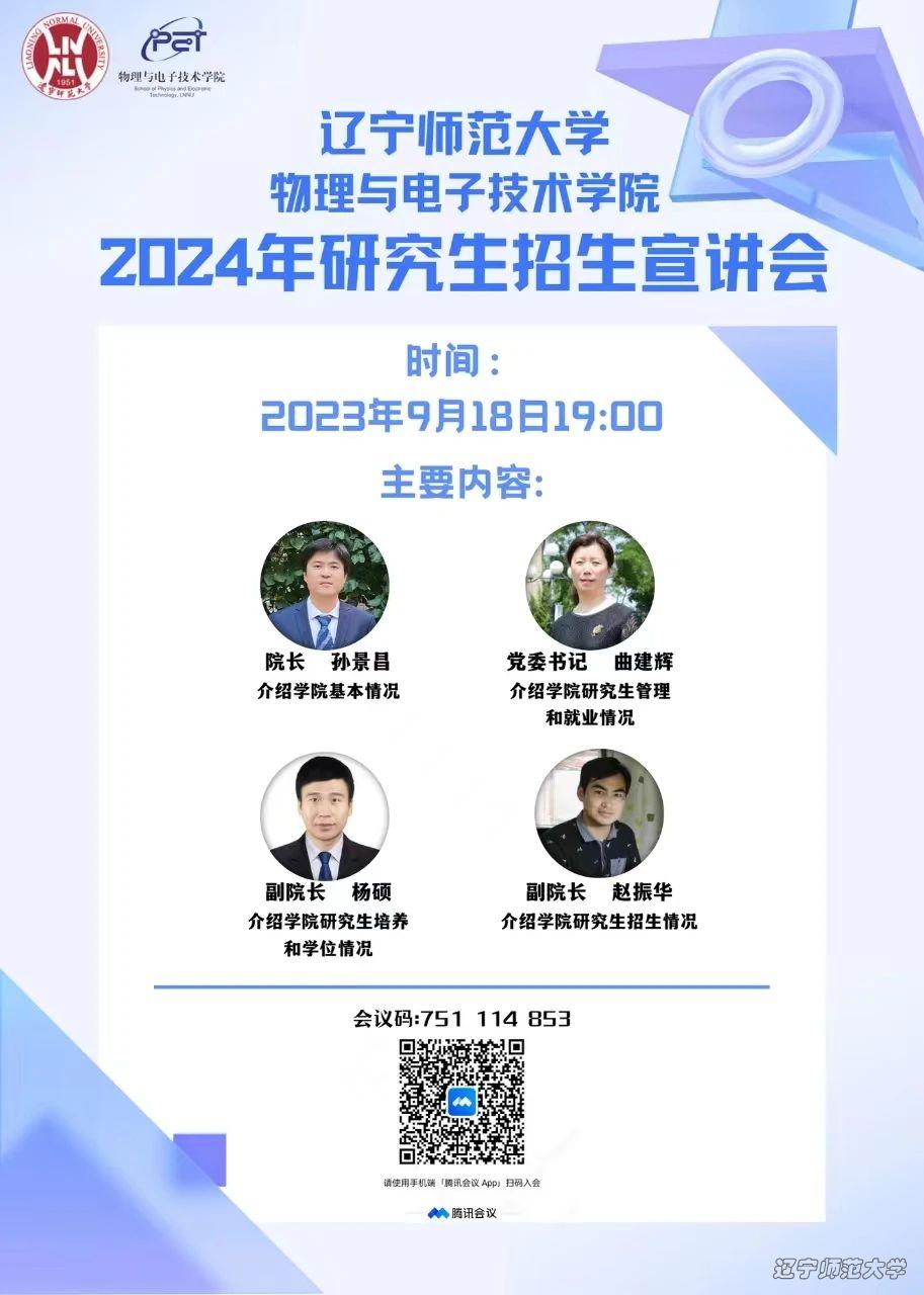 研究生招生宣讲会的关注,本次宣讲会定于9月18日(周一)晚上19:00-20:00进行,腾讯会议号为:751114853,欢迎参加!