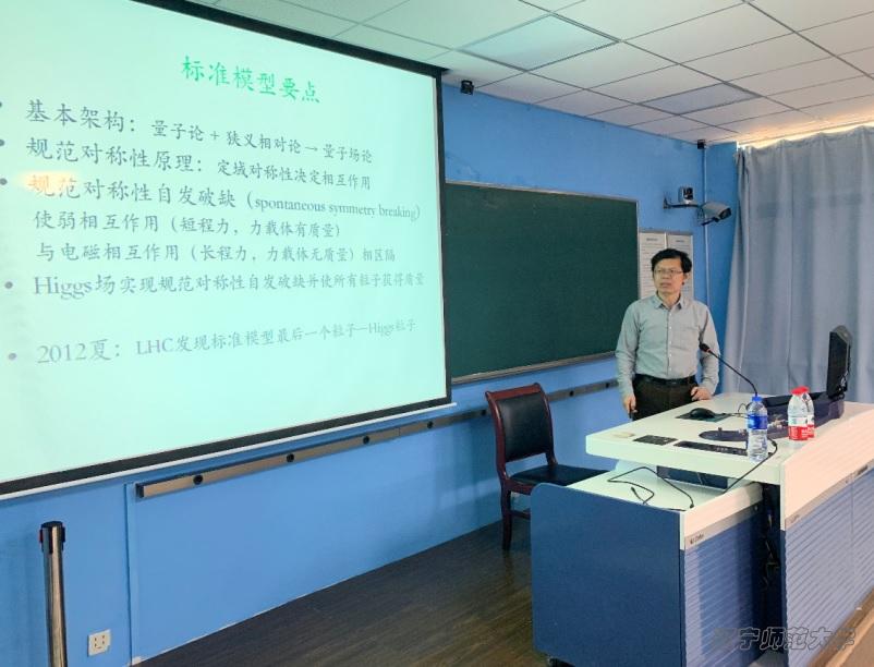 2019年12月2日下午3点40分,南开大学廖益教授应邀在理化楼A808教室为我校师生作了题为《中微子质量之标度不变暗物质起源的唯象学》的学术报告。