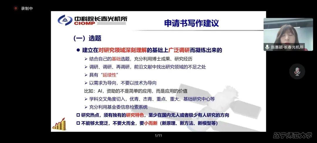 教师的疑惑,陈副研究员给予了全面细致的解答,对申报教师进一步凝练研究方向和撰写高质量申报书起到了积极的指导作用。