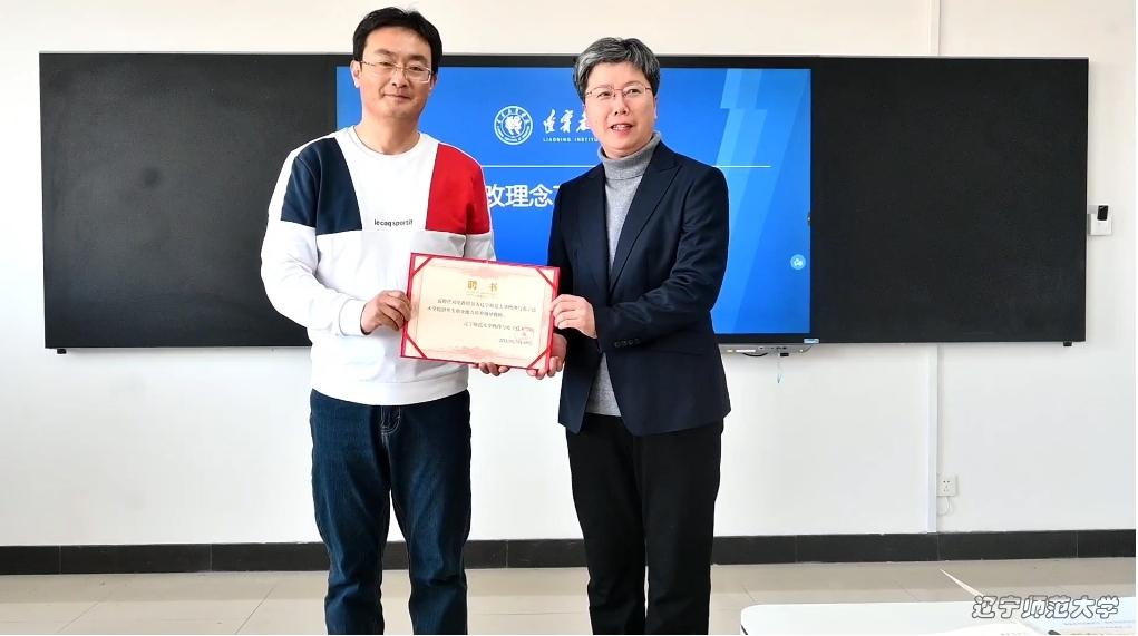 党委书记曲建辉为刘旭老师颁发了《嘟嘟成人网